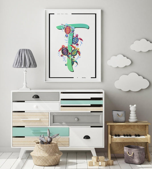 Tortoise Letter T Print