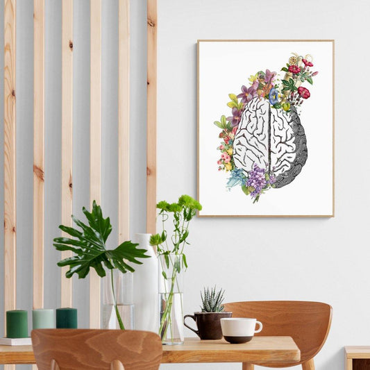 Anatomical Brain and Flowers Print
