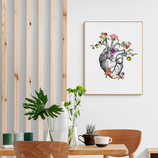 Anatomical Heart and Flowers Art Print
