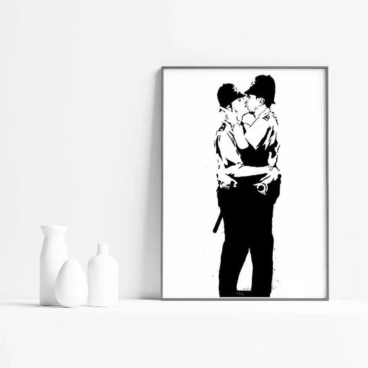 Kissing Police Banksy Poster