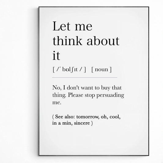Black-and-white poster with quote. This poster phrase definition is ideal for anyone who likes you to have some perfect gifts. Does this sound like you?