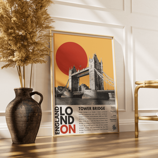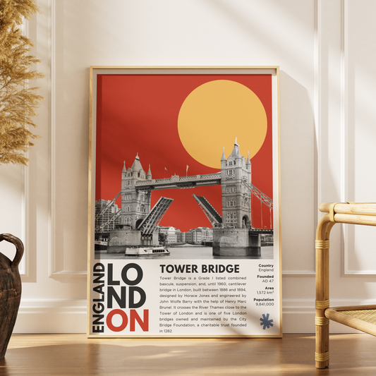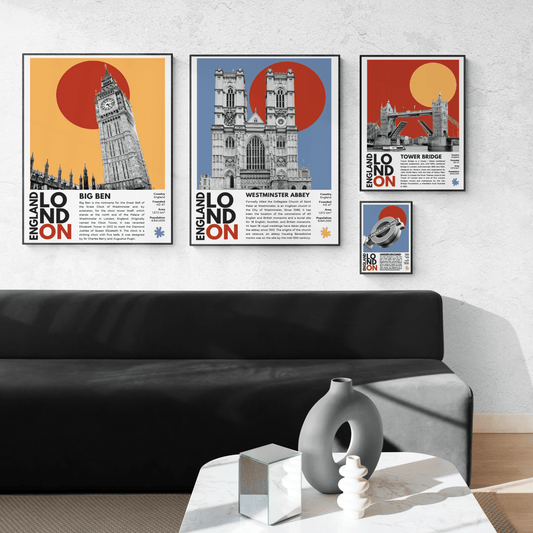 Discover our exclusive collection of London posters that blend illustration and photography into stunning wall art. Designed with a bold three-color palette of red, yellow, and blue, these prints capture the essence of the city in a modern and vibrant way.