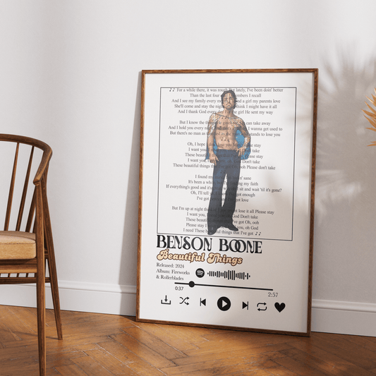 Benson Boone - Beautiful Things Lyrics Prints