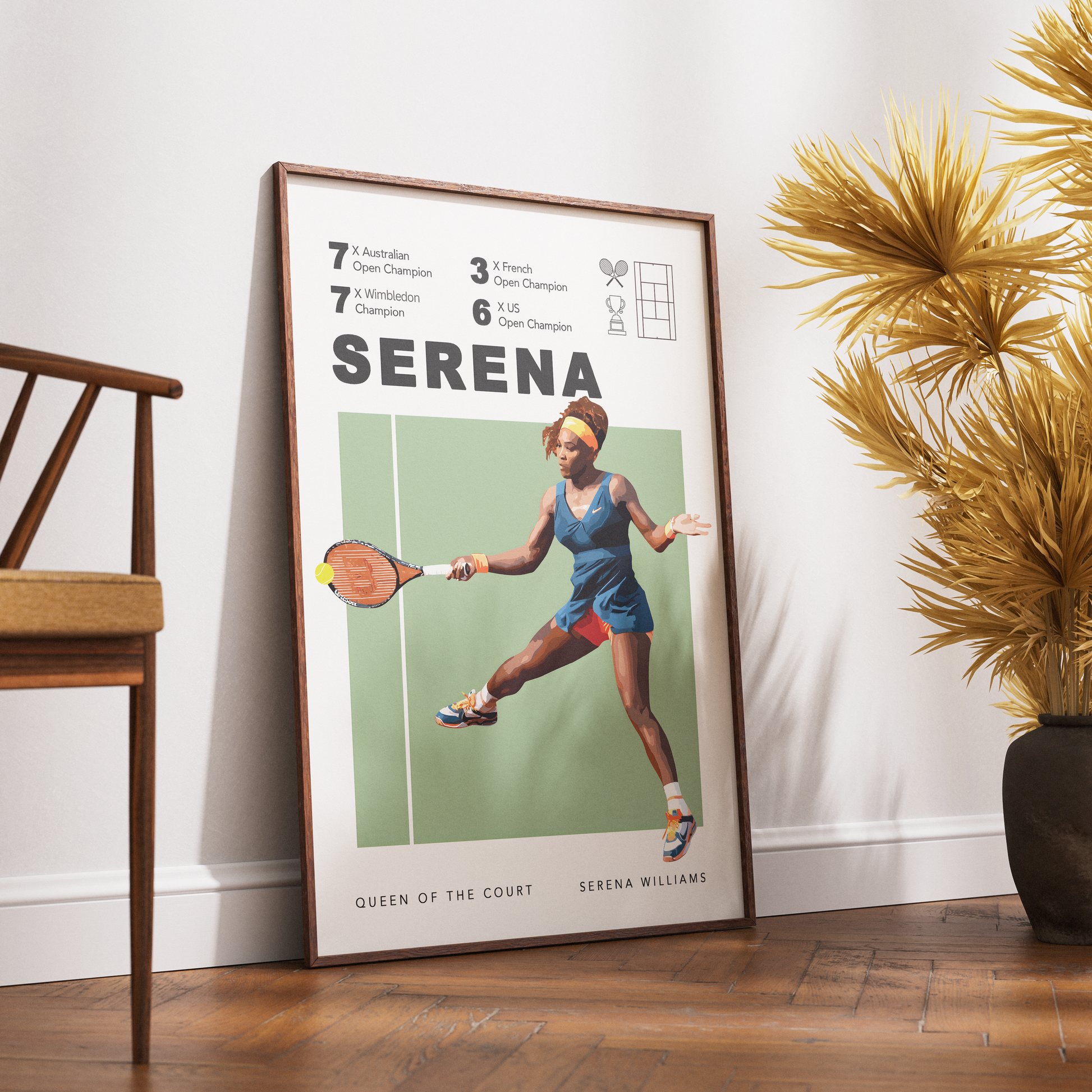 Add a touch of elegance and class to your home with our Serena Williams Tennis Posters. They come in A5, A4, and A3 sizes and feature minimalist tennis court prints of the tennis tournaments and Grand Slams. Each poster has a grainy retro effect with glossy tones and bold, centered text. Showcase your passion and support for some of the world's best tennis players.