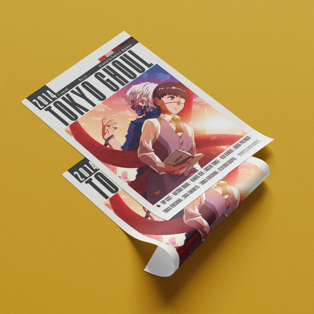 Immerse yourself in the dark, emotional world of Tokyo Ghoul (2014) with this striking poster by 98types Studio. Featuring Ken Kaneki, his iconic mask, and the gritty aesthetic of the series, this artwork captures the psychological tension, identity struggle, and haunting atmosphere that define the anime.