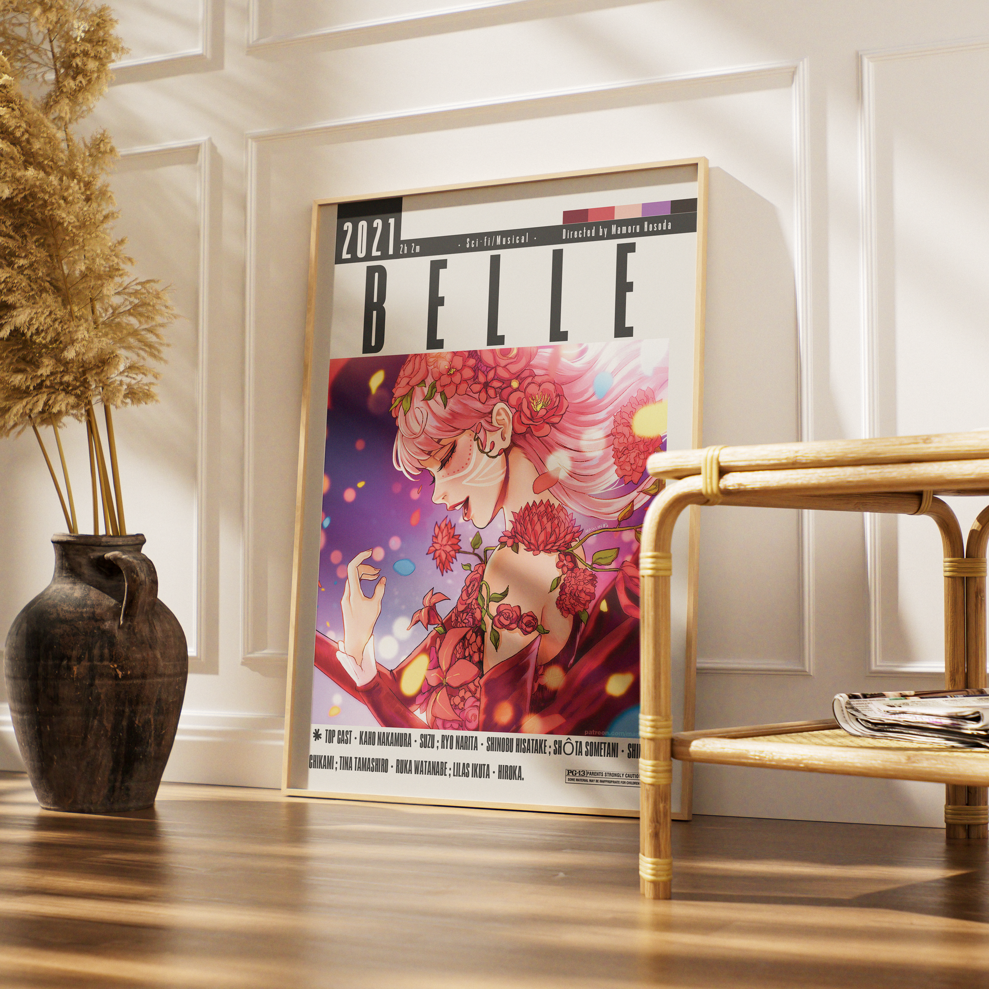 Step into the dazzling world of Belle (2021) with this minimalist art print by 98types Studio. Inspired by Mamoru Hosoda’s breathtaking anime about identity, music, and human connection, this design captures the film’s luminous beauty and emotional resonance in a refined, modern style.