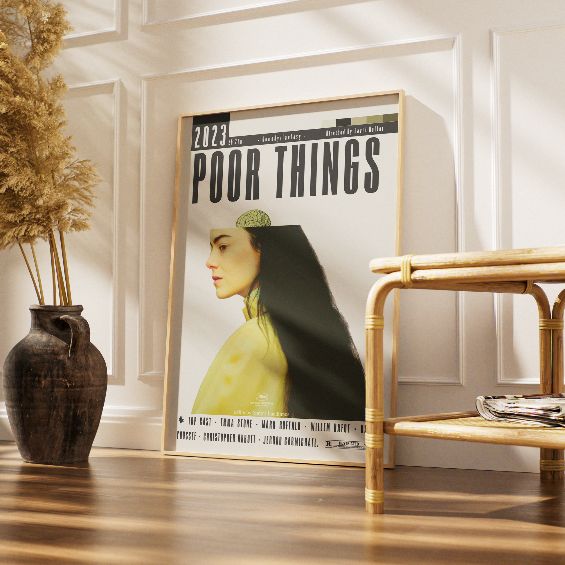Celebrate the surreal beauty of Poor Things (2023) with this minimalist art print by 98types Studio. Inspired by Yorgos Lanthimos’s visionary direction and Emma Stone’s award-winning performance, this design captures the film’s bold color palette, eccentric world, and timeless visual artistry in a refined, modern style.