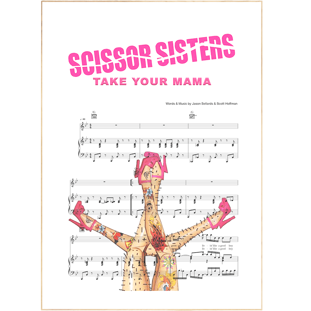 This professionally designed and hand-crafted poster features the popular Scissor Sisters lyric "Take Your Mama" for an eye-catching display. The high-quality poster is an ideal way to show off your love for music and make your walls come alive. Add a touch of personal style to your home decor today.