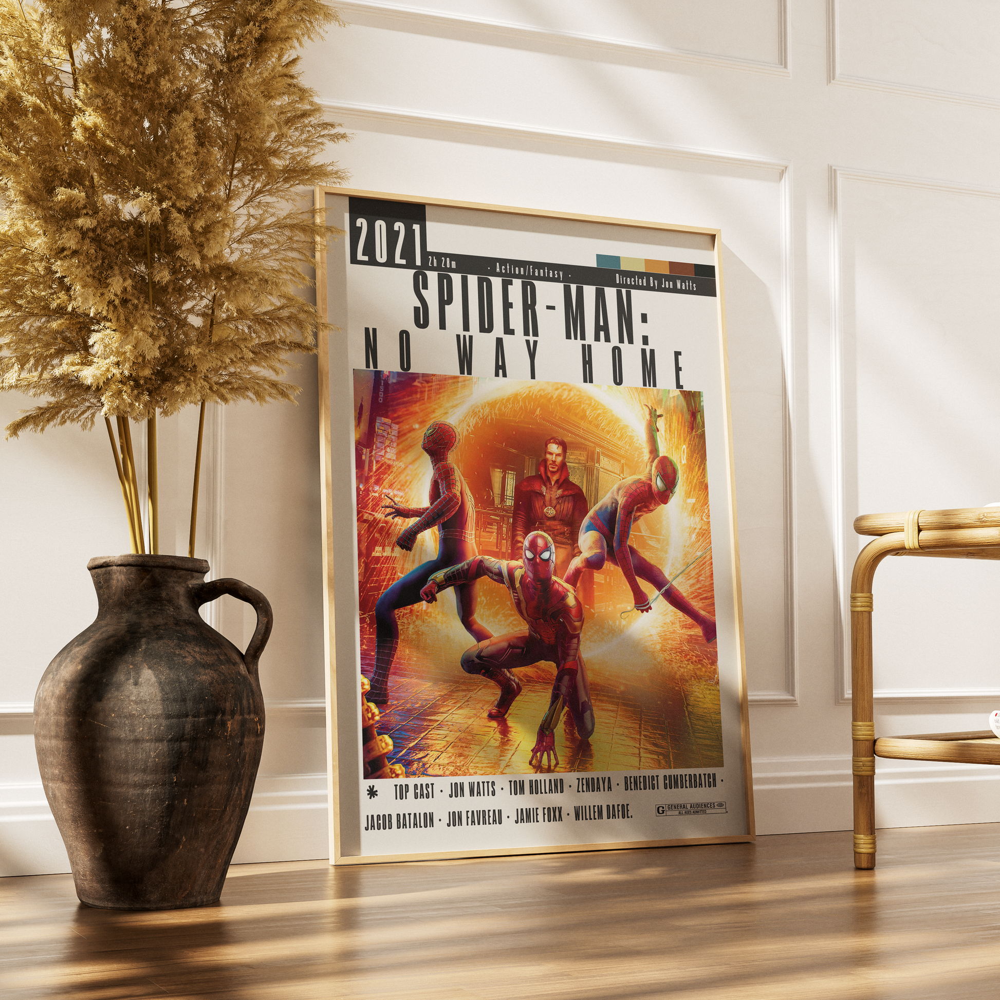 Enter the multiverse with this premium Spider-Man: No Way Home (2021) poster, originally designed and UK-made by 98 Types Studio. Printed on high-quality gallery-grade paper, this exclusive artwork showcases Spider-Man alongside iconic villains from across the multiverse, captured with vivid colour, cinematic detail and dynamic composition.