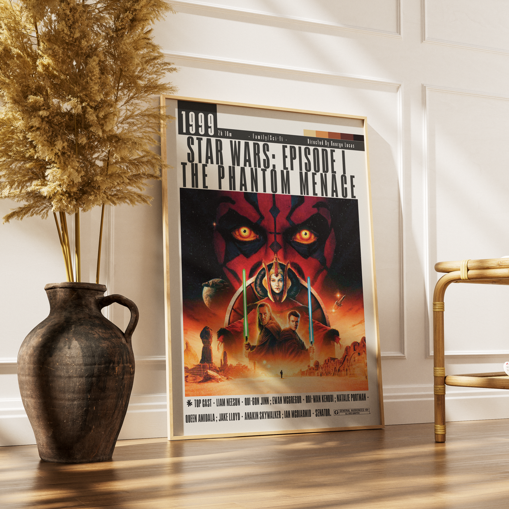 Relive the beginning of the Skywalker saga with this premium Star Wars: Episode I – The Phantom Menace (1999) poster, originally designed and produced in the UK by 98 Types Studio. Featuring vivid colours, crisp detail and cinematic composition, this high-quality print highlights iconic characters such as Anakin Skywalker, Obi-Wan Kenobi, Qui-Gon Jinn and Darth Maul.