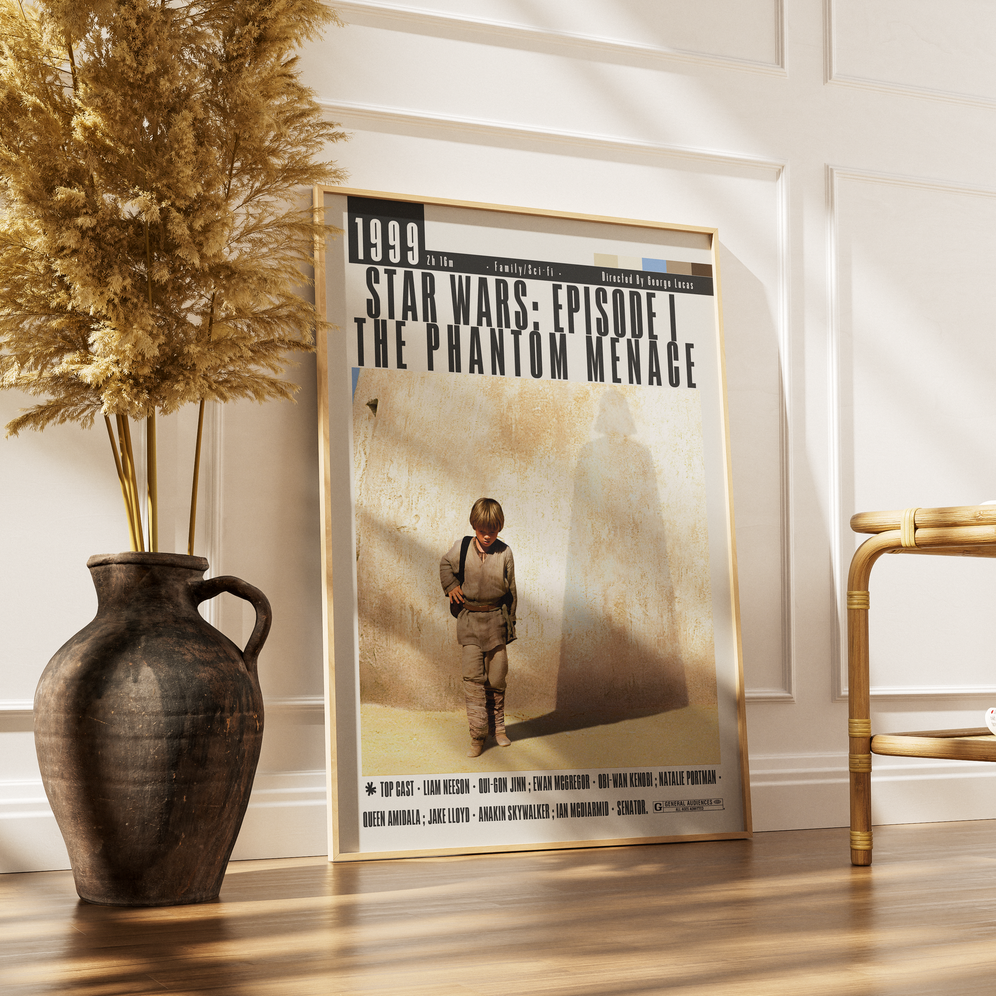 Relive the beginning of the Skywalker saga with this premium Star Wars: Episode I – The Phantom Menace (1999) poster, originally designed and produced in the UK by 98 Types Studio.