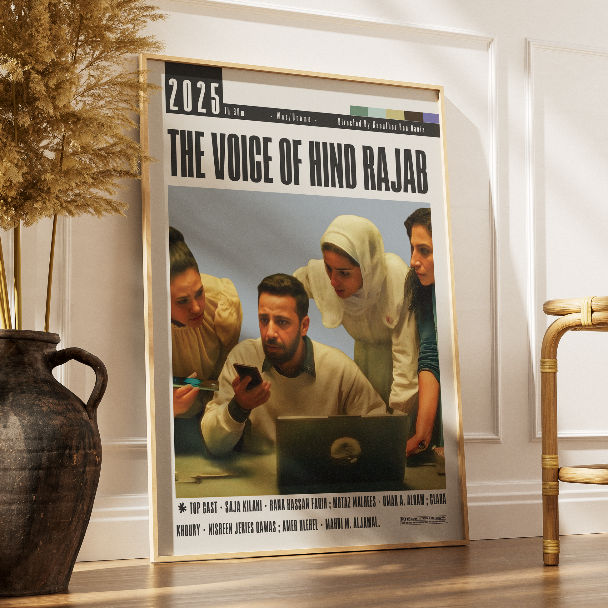 Make a powerful statement with this The Voice of Hind Rajab (2025) movie poster, representing a critically acclaimed film nominated for or recognized at the Golden Globes 2025.