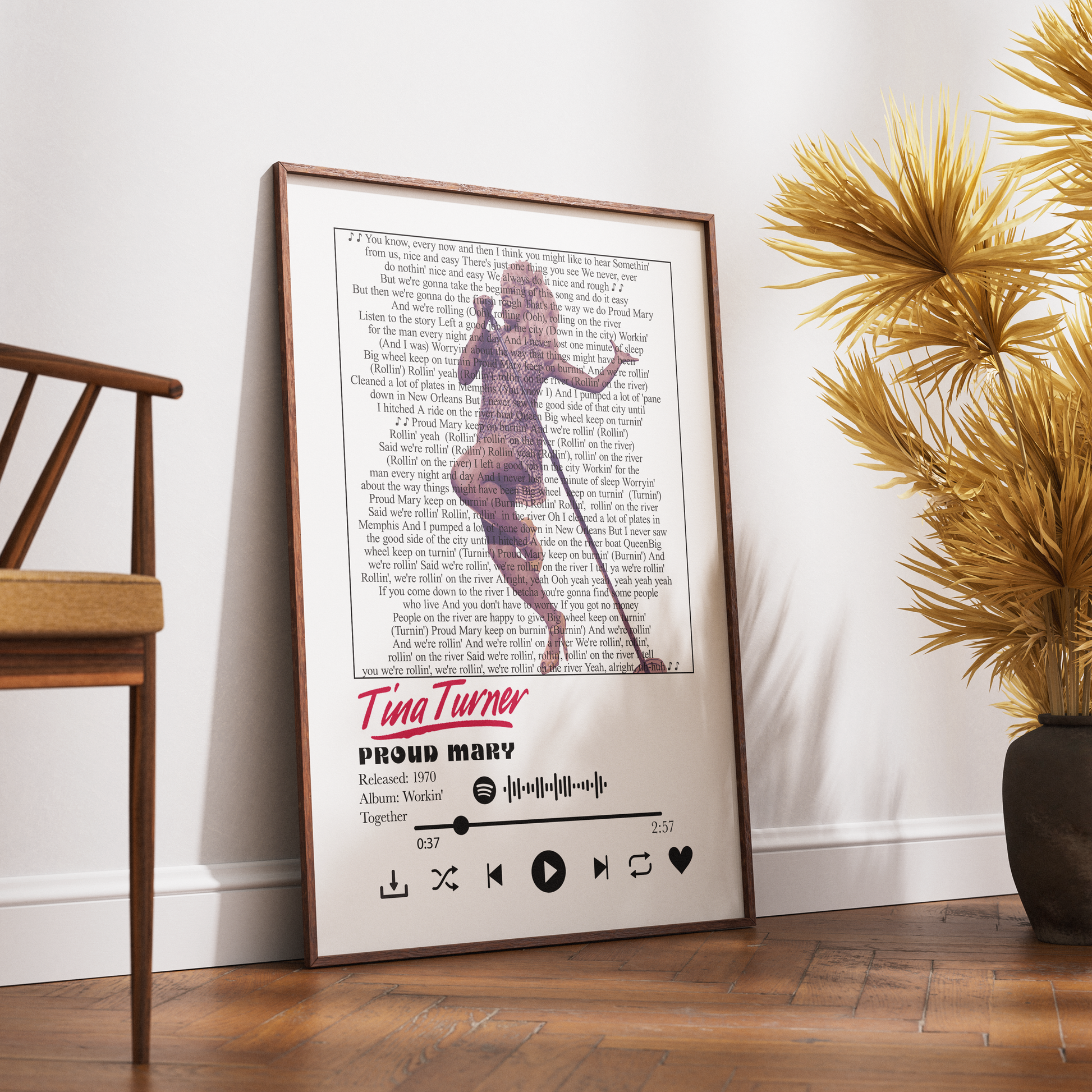 Roll down the river with pure soul and unstoppable energy. This Tina Turner – Proud Mary minimalist art print by 98types Studio celebrates one of music’s most legendary performances — a perfect blend of rhythm, grace, and fire.