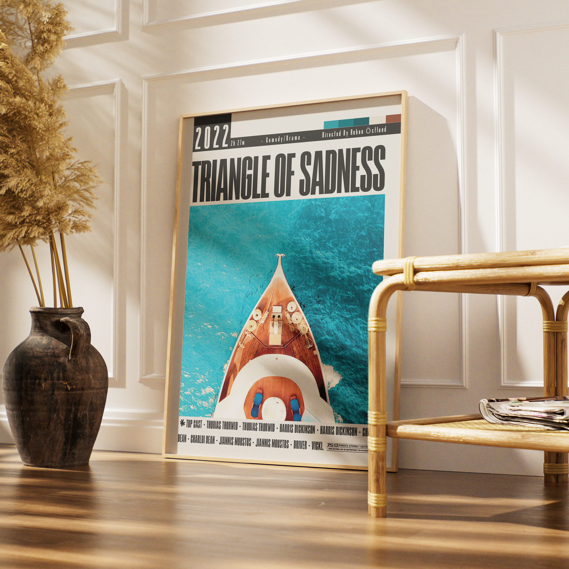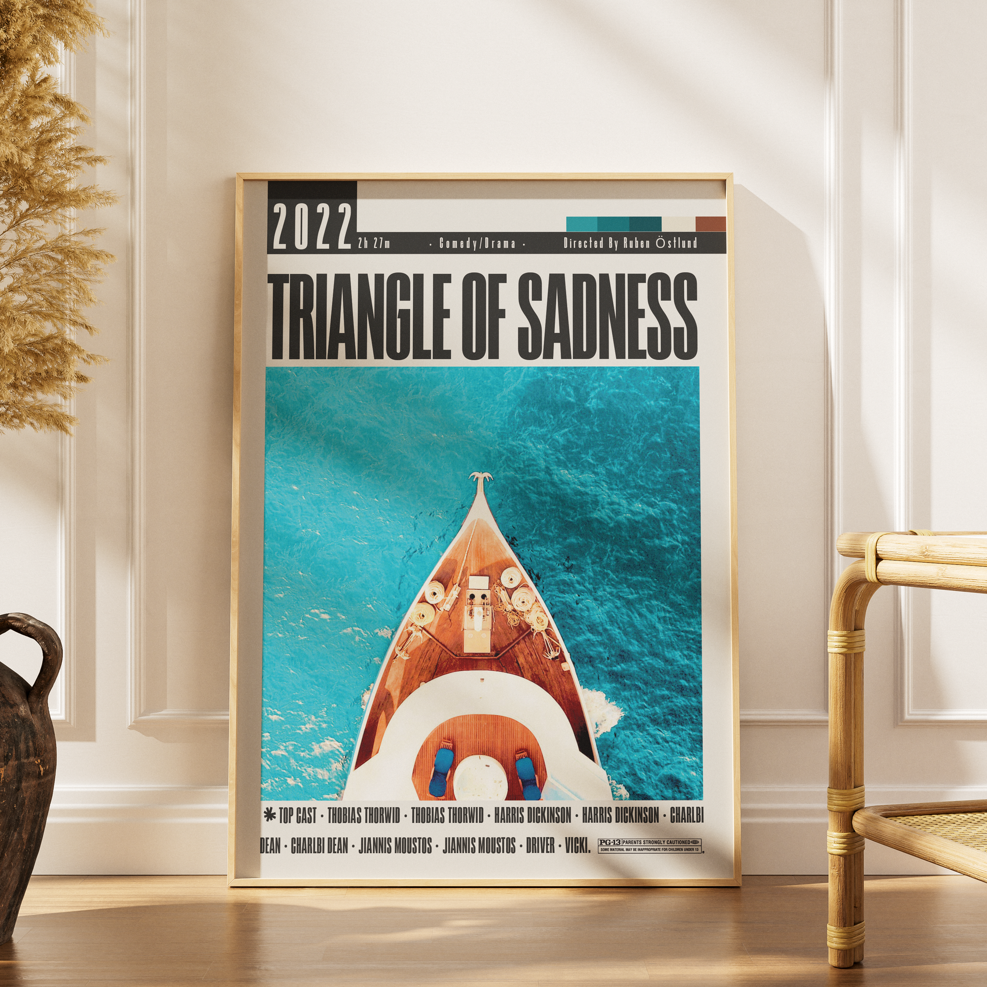 Capture the darkly satirical world of Triangle of Sadness (2022) with this minimalist art print by 98types Studio. Highlighting the film’s sharp social commentary and striking visuals, this poster brings contemporary cinema art into your space with modern, clean design.