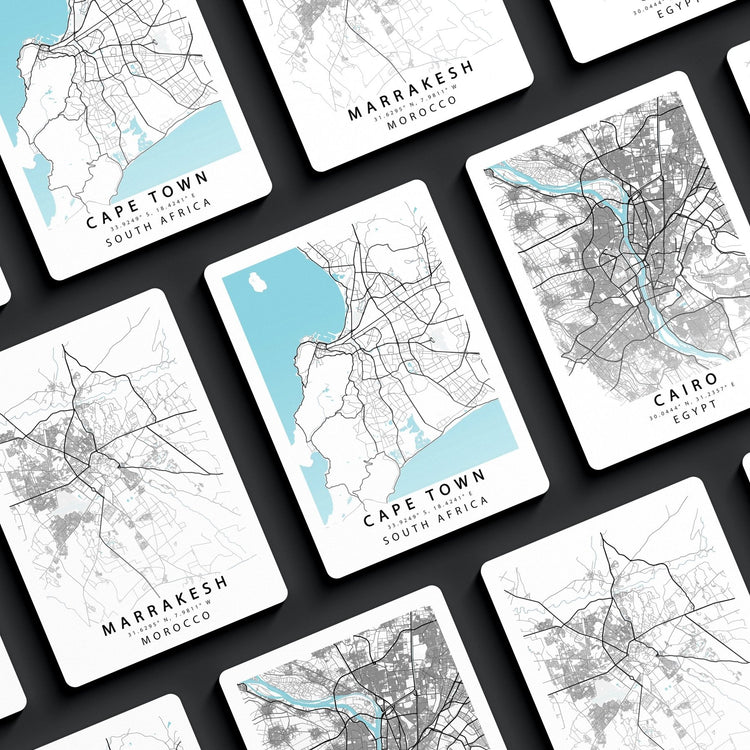Buy from a full range of African cities maps prints. Get a high quality map of Marrakesh, Cape Town, Cairo, and more. Shop Now!